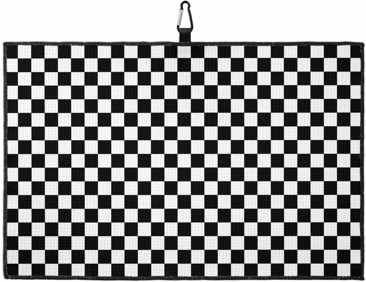 SEVENBABU Golf Towels for Golf Bags with Clip - Funny Microfiber Waffle Pattern Golf Towel Modern Black and White Checkered Lattice Pattern Golf Accessories for Men and Women Gifts 24x16 Inch