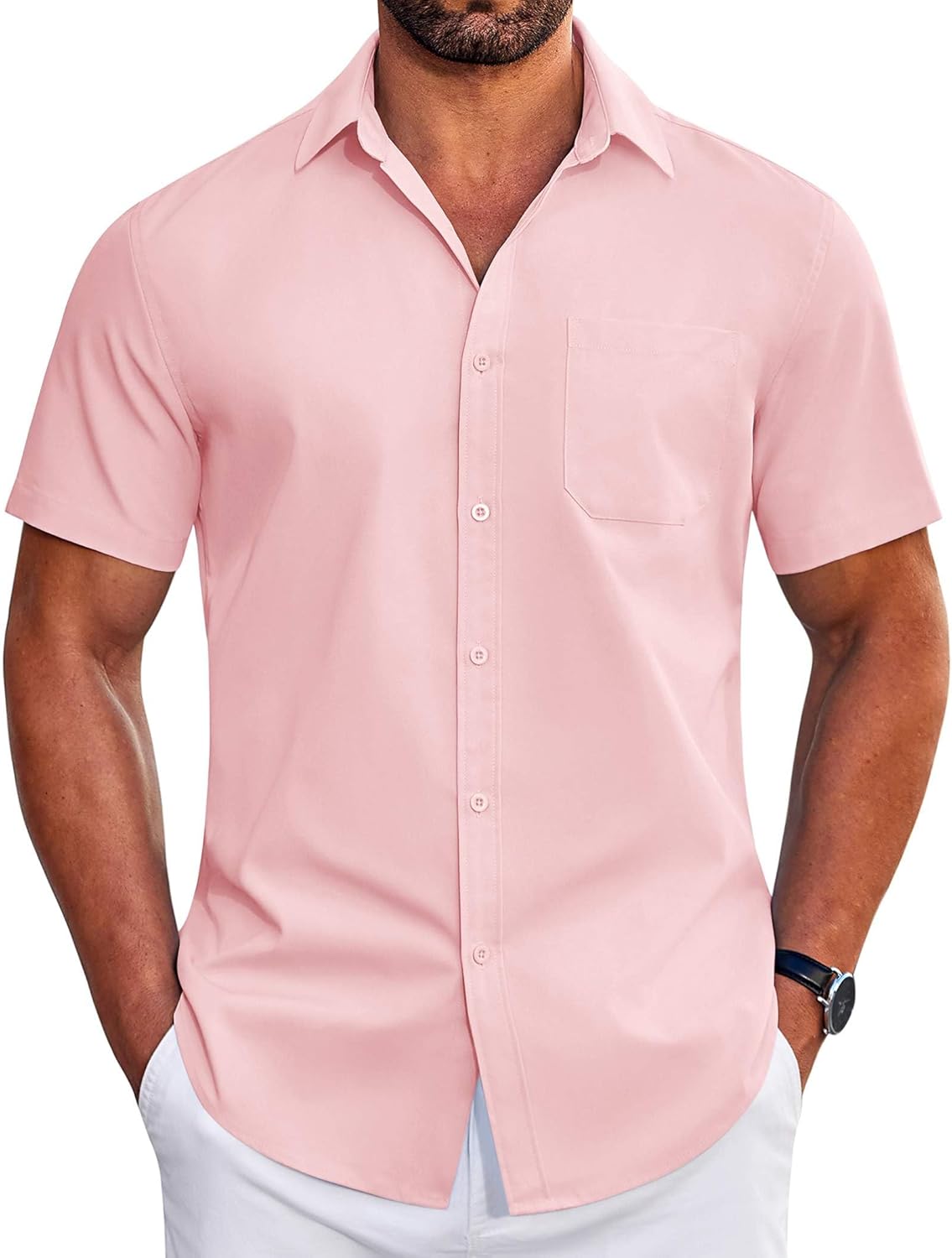 COOFANDY Mens Short Sleeve Dress Shirts Wrinkle Free Business Casual Button Down Shirt with Pocket