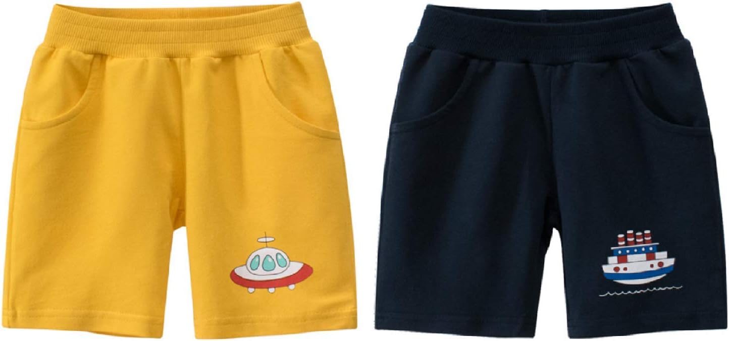 Toddler Little Boys Shorts 2 Pack Boys Cotton Sports Shorts with Elastic Waist for 2-7 Years
