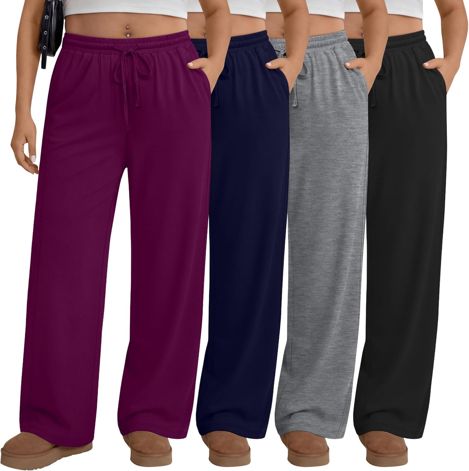4 Pack Women's Plus Size Pants Wide Leg Yoga Pants Elastic Waist Drawstring Sweatpants Pocket Lounge Casual Jogger
