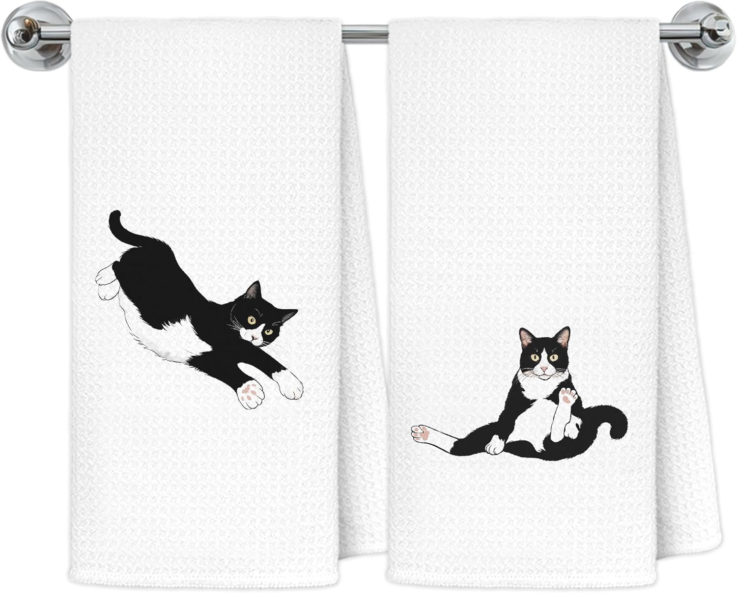 Funny Tuxedo Cat Gifts Kitchen Towels, Cat Lover Mom Lady Gifts Hand Towels for Bathroom Kitchen, Black and White Kitty Kitten Decorative Dish Towels Drying Cloth, 16x24 Inch Set of 2