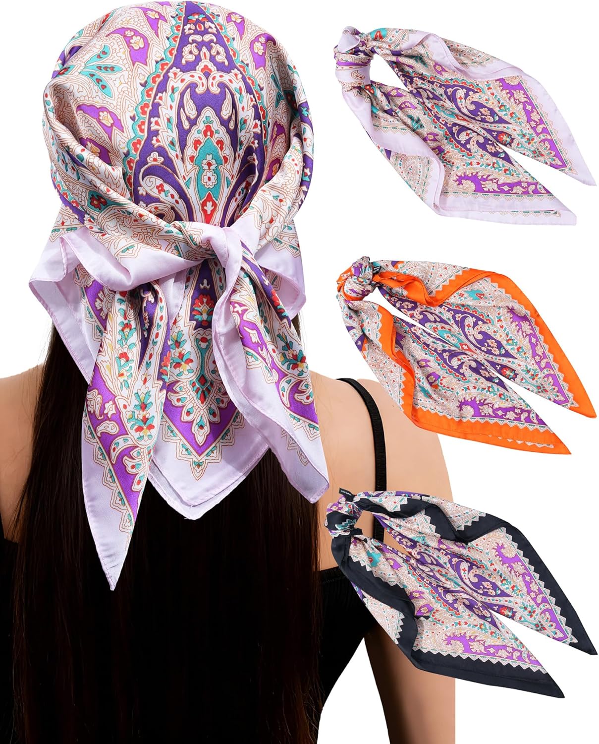 3Pcs Satin Hair Scarves Silk Bandana Scarf Headscarf Silk Feeling Scarf for Women
