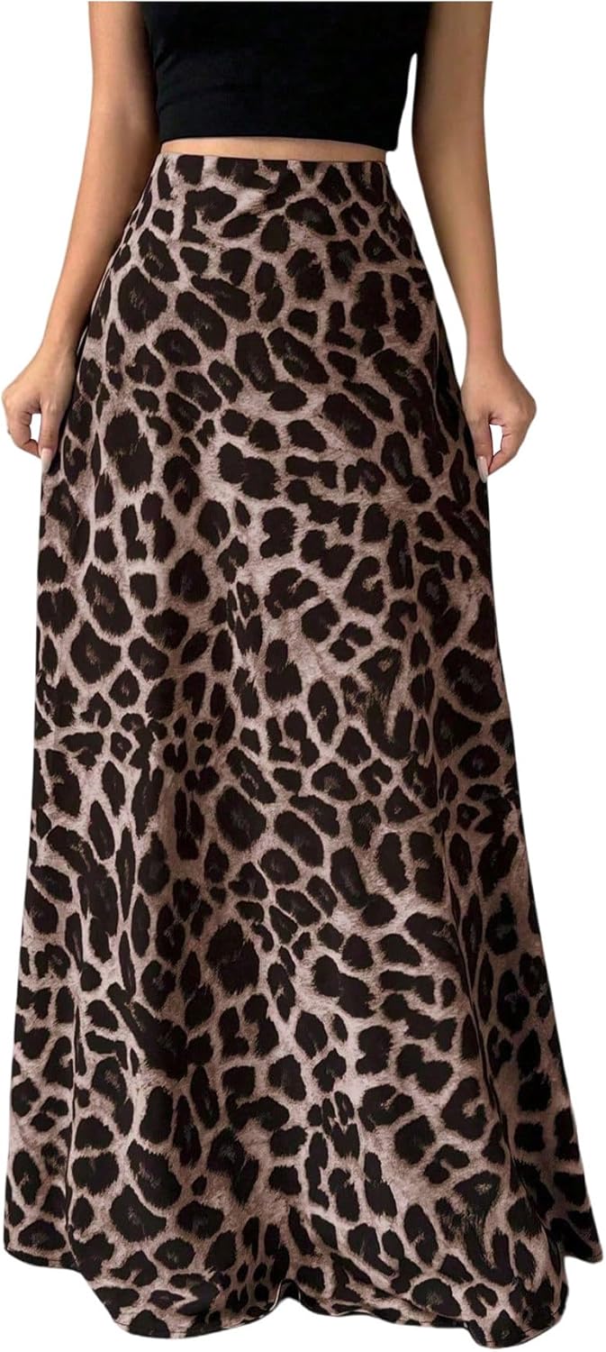 Women's Cheetah Graphic Long Skirt Elastic Waisted Party Maxi Skirts
