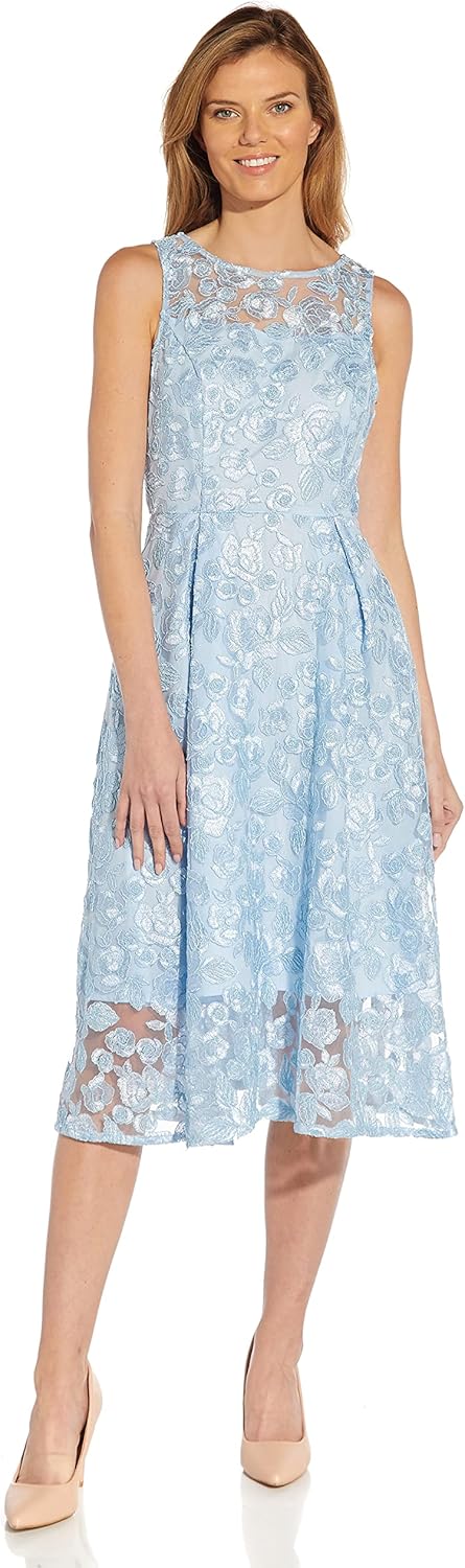 Adrianna Papell Womens Embroidered Tea Length Dress