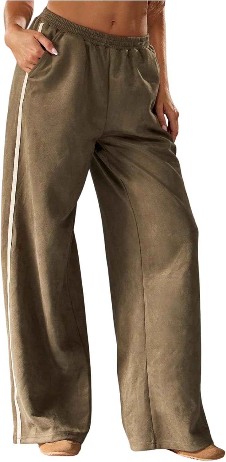SHENHE Women's Faux Suede Baggy Pants Wide Leg Elastic Waist Loose Casual Fall Pants Trousers