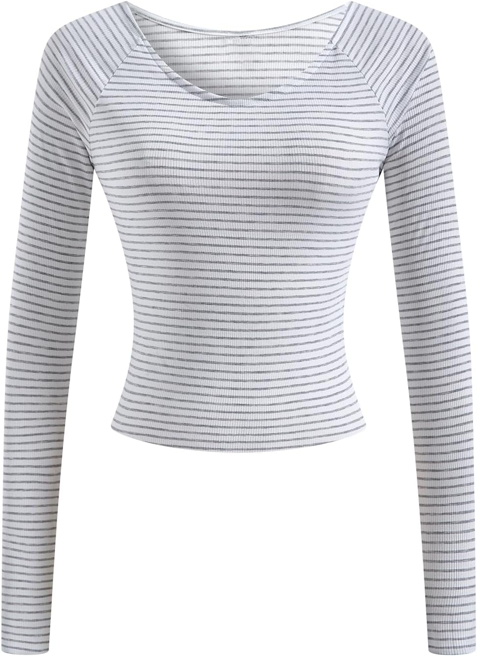 Women's Striped Long Sleeve Crop Tops Scoop Neck Ribbed Knit Dressy Casual T Shirts