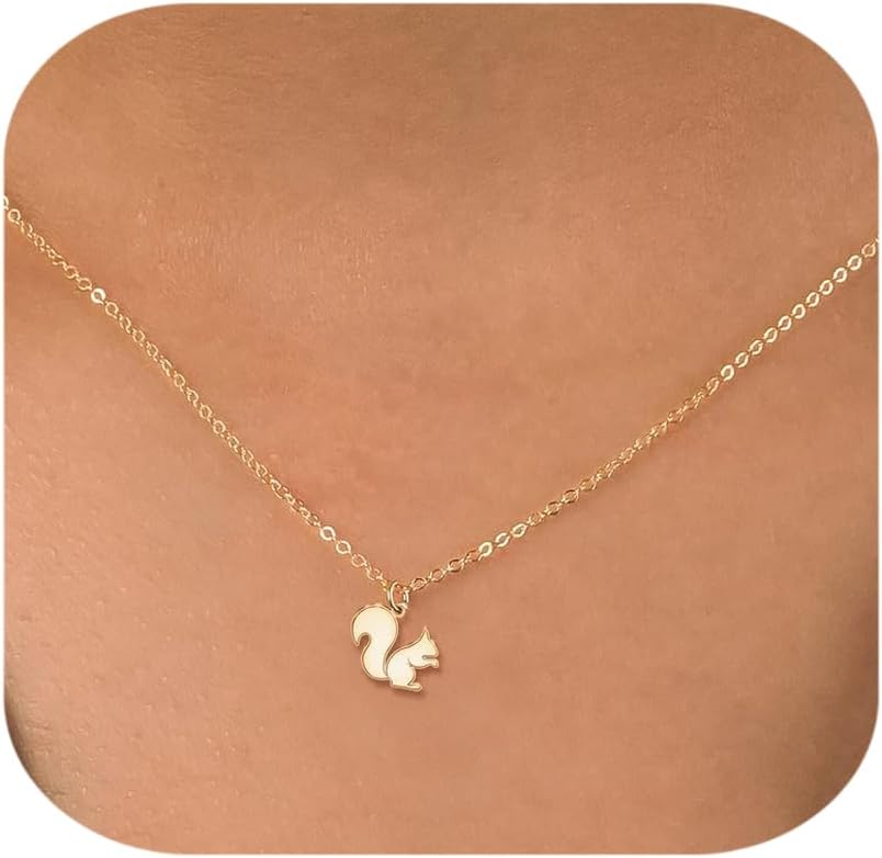 Dianty Squirrel Necklace For Women 18K Gold Plated Cute Animal Jewelry Squirrel Christmas Gift for Teens Hers
