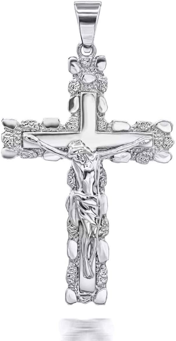 Claddagh Gold Solid Sterling Silver Nugget Crucifix Cross Pendant (Size SM/LG)