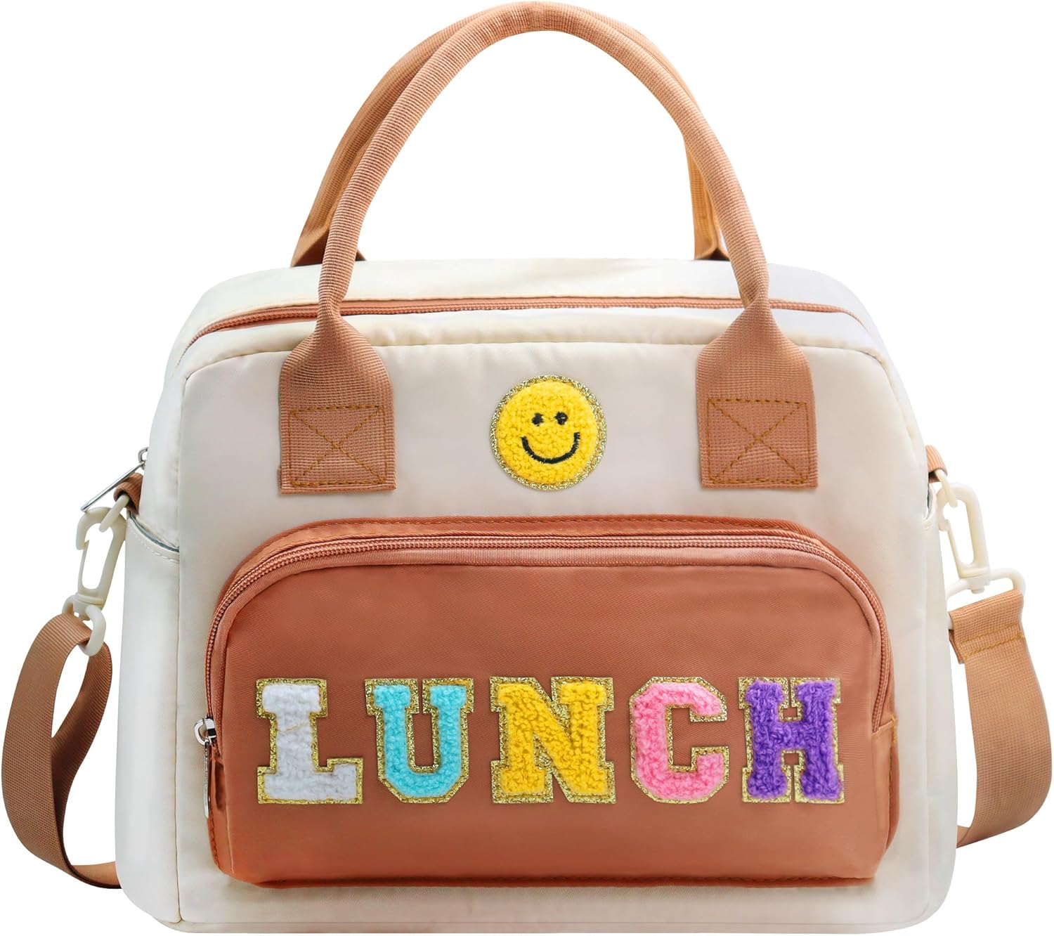 RLGPBON Insulated Lunch Bag Teen Girls, Preppy Lunch Box Large Insulated Lunch Bag Reusable Lunch Tote Bag, Preppy LunchBag for Girls School Travel Picnic