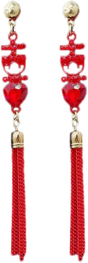 Red Tassels Wedding Statement Dangle Drop Earring S925 Sterling Silver Post for Women New Year Celebration Fashion Earrings Cubic Zirconia Crystal Chinese Style Long Dangling Piercing Xmas Gift