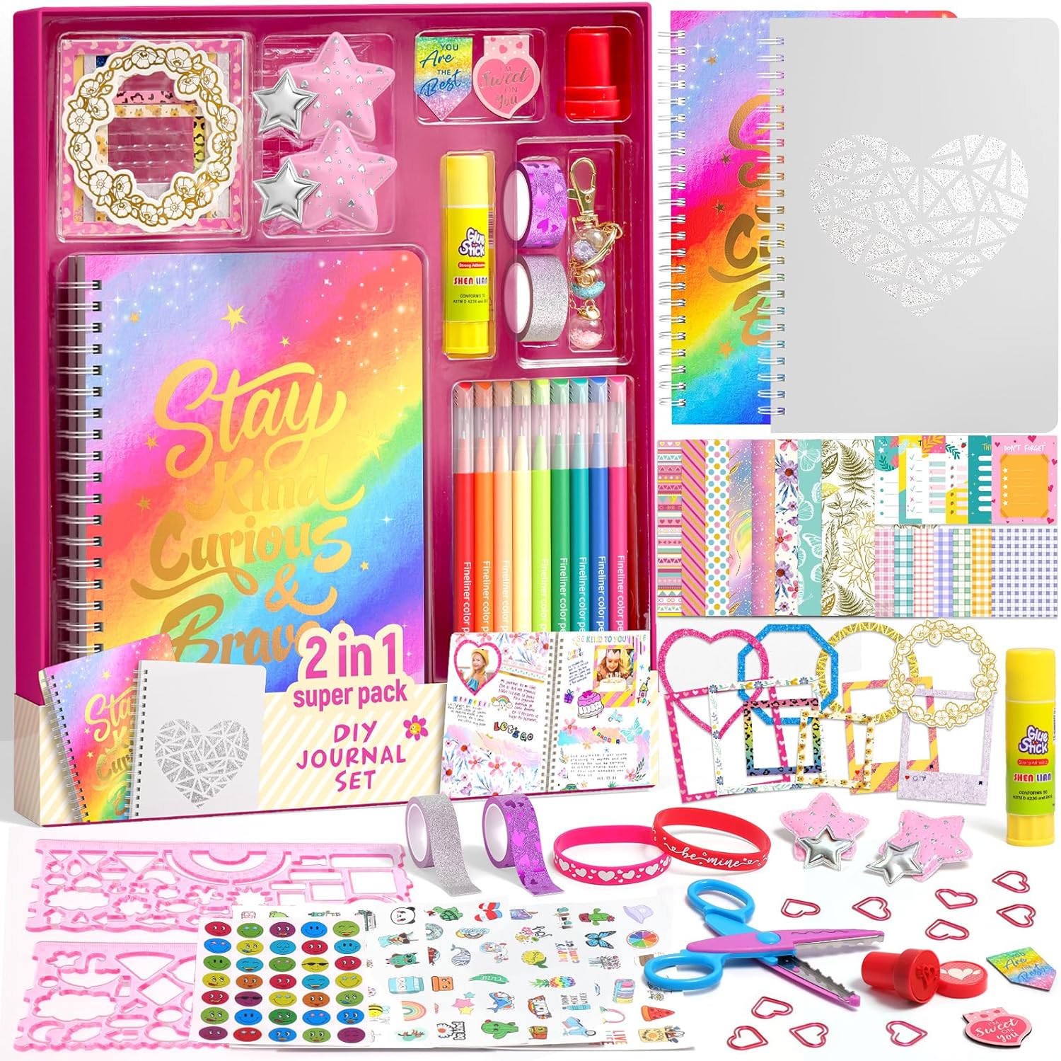 - 1 MORE SET WHEN OPEN: Includes 2 sets of journals and 2 sets of accessories. The art supplies for girls encourages girls to express themselves freely, use it to record travel experiences, learning achievements and daily plans, the mega set for the young writer, creator, or memory gatherer.