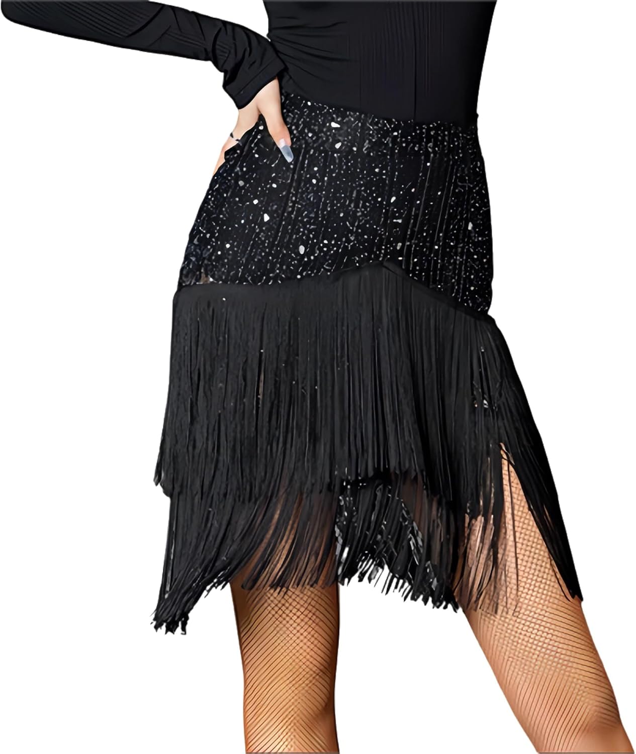 Women Black Latin Dance Skirt Practice Wear Tassel Skirt Short Skirt Professional Dance Skirt Performance Skirt