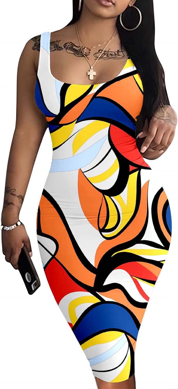 Nimsruc Women Casual Sexy Tank Top Bodycon Dress Summer Pencil Sleeveless Basic Midi Club Dresses