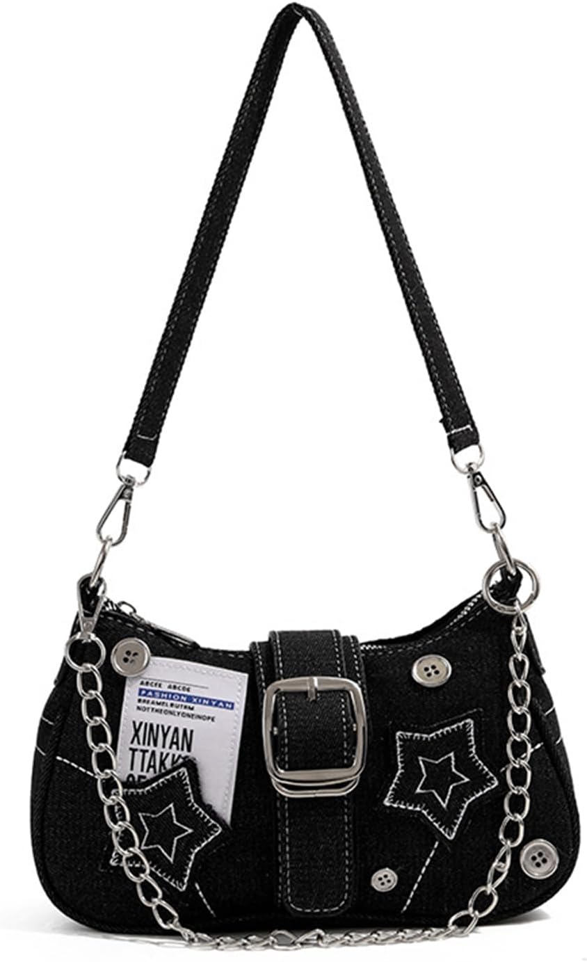 Grunge Shoulder Bag Fairy Grunge Hobo Bag Denim Chain Y2K Purses Crossbody Bag for Women