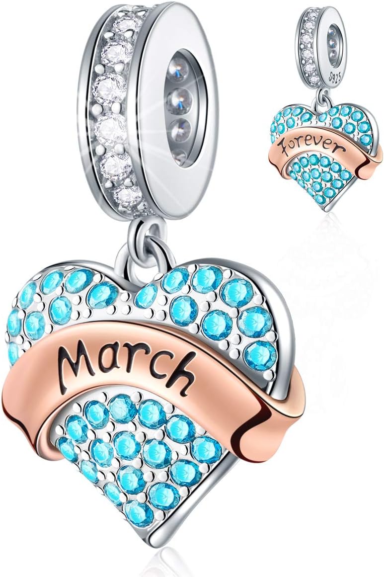 EMOSTAR Jan-Dec Birthstone Charms fits European Birthday Bracelet, Dangle 925 Sterling Silver Heart Shaped Pendant with 12 Months Birthstones, Gifts for Mom/Women