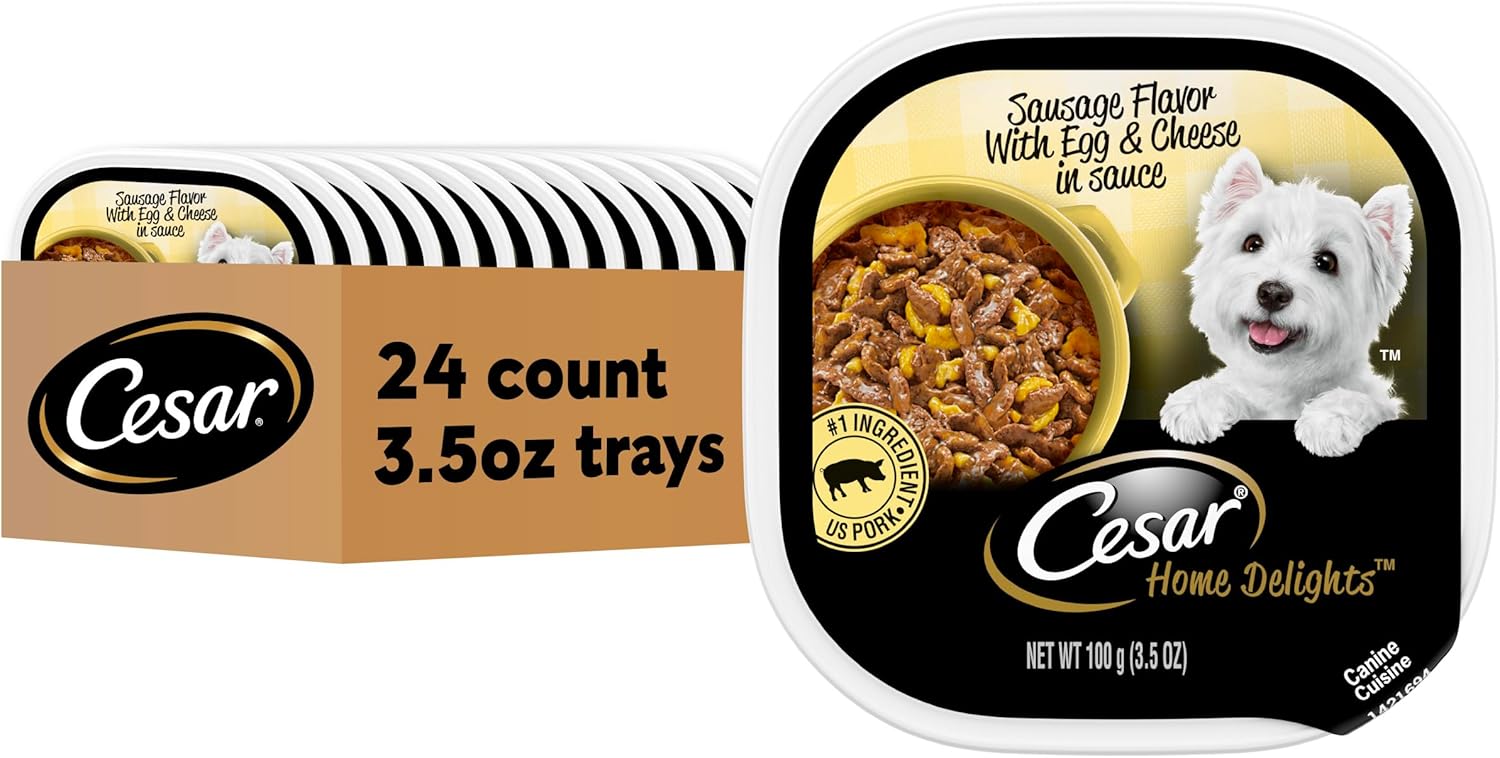 Cesar Home Delights Adult Wet Dog Food, Sausage Flavor with Egg & Cheese in Sauce, Wet Food for Dogs, 3.5 oz Tray, 24 Count