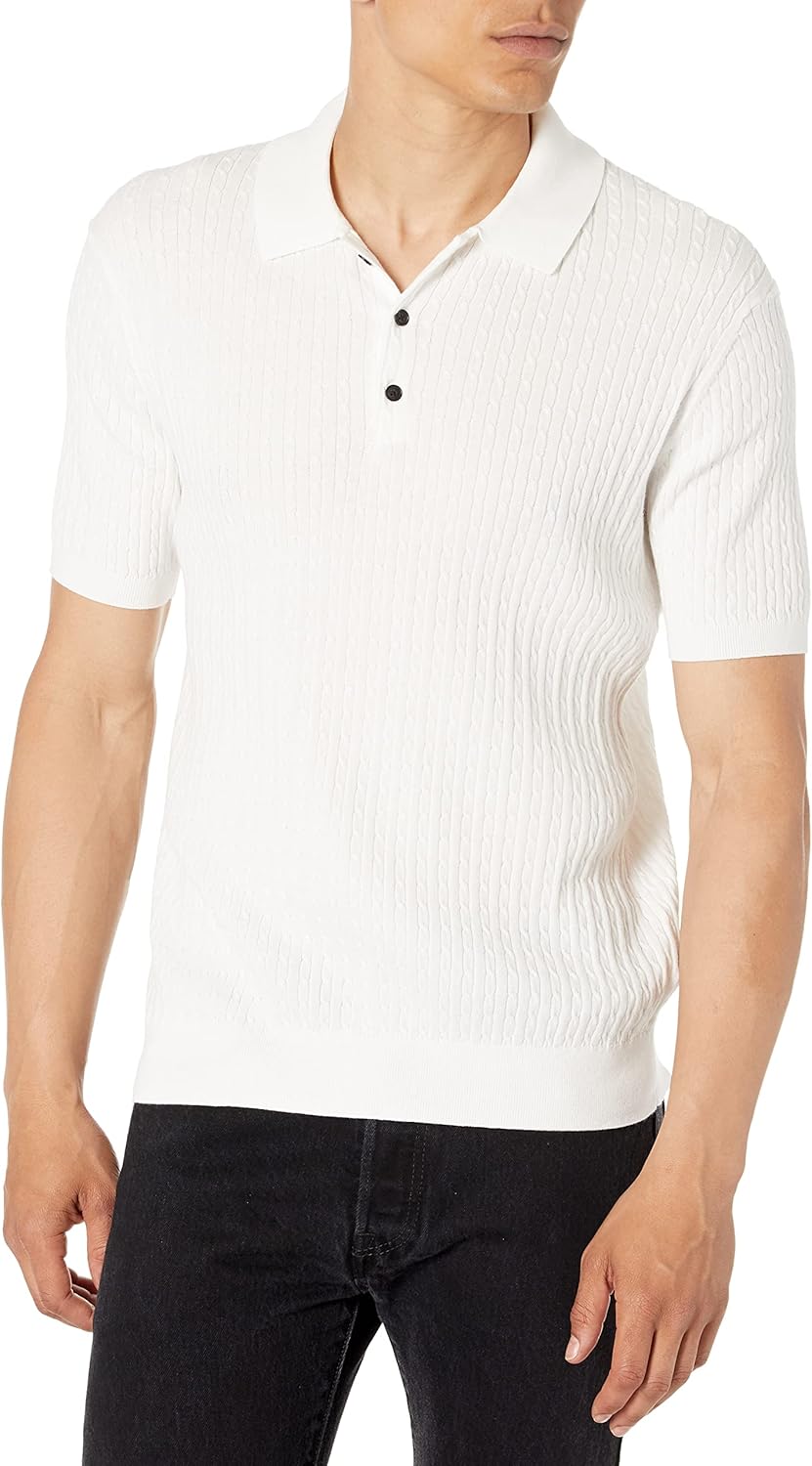 Club Monaco Mens Short Sleeve Cable Polo Sweater