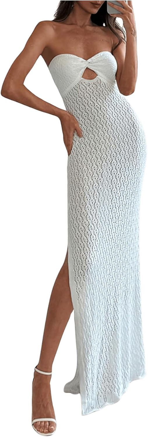 SweatyRocks Women's Cut Out Strapless Tube Dress Twist Split Thigh Bodycon Long Dresses