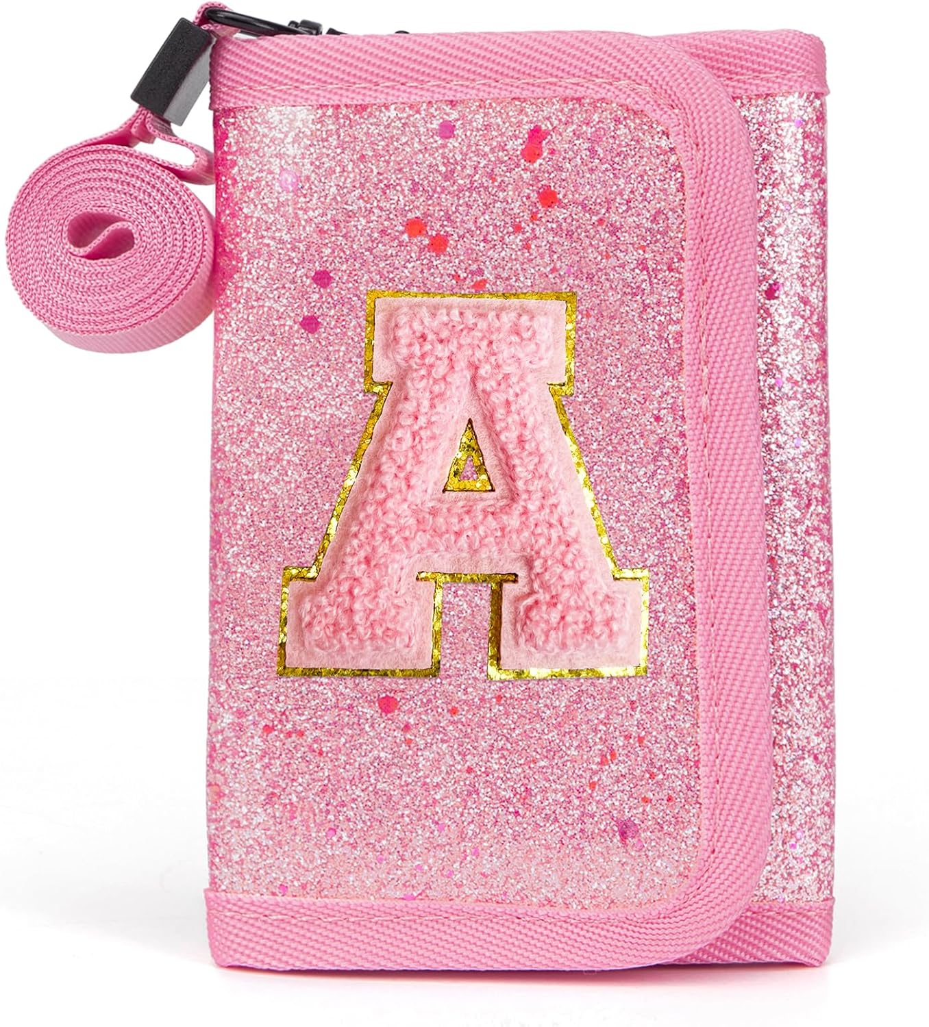 - 【High Quality】OYLOLA Initial kids wallet material used glitter fabric and PVC material ensures sparkling and won't fall off. Girl wallet high-quality lining and abrasion resistant nylon trim ensure that the wallet will last for a long time