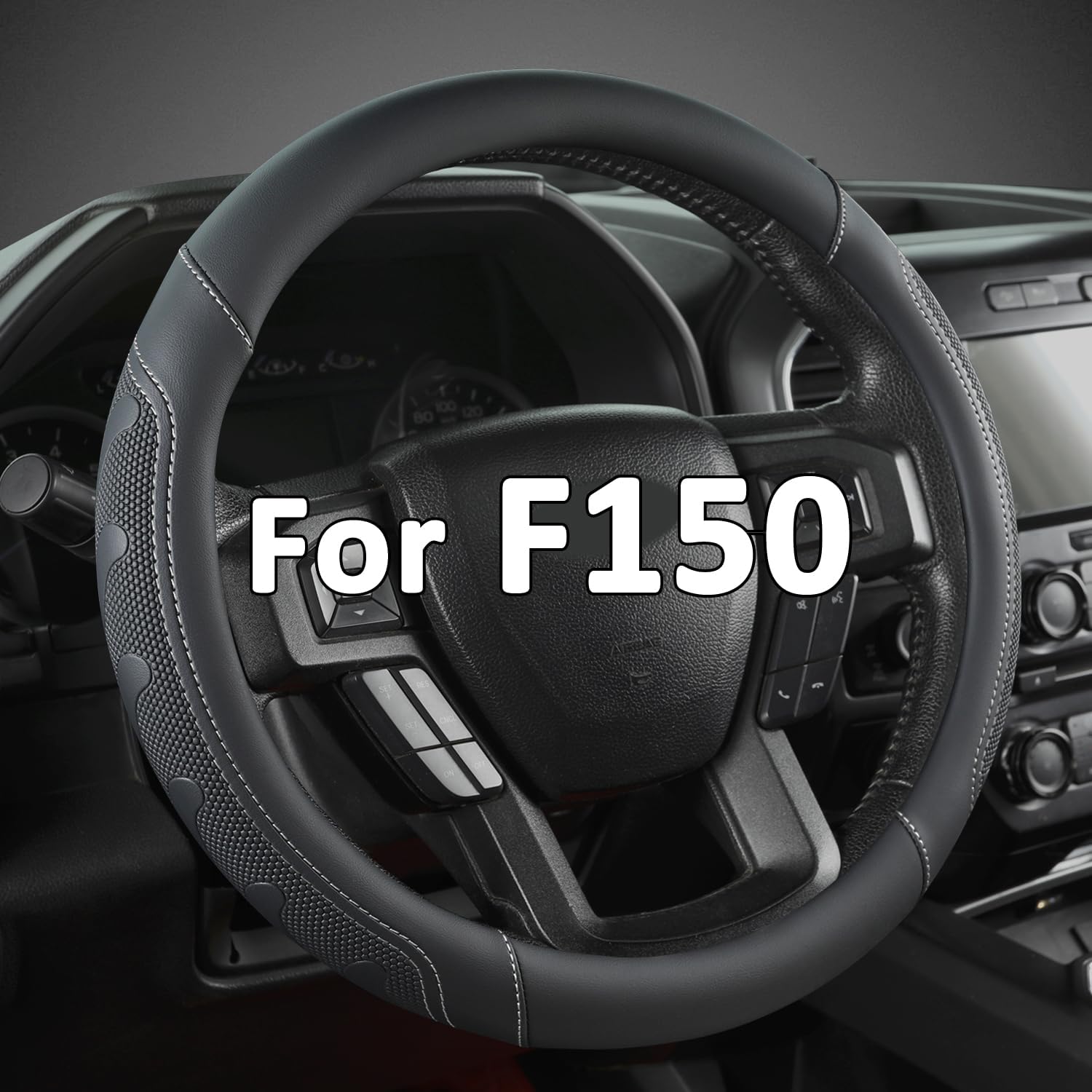 GIANT PANDA Car Steering Wheel Cover for Ford - F150 F250 F350 Expedition, (15.5-16 inches - Black+Gray Line)