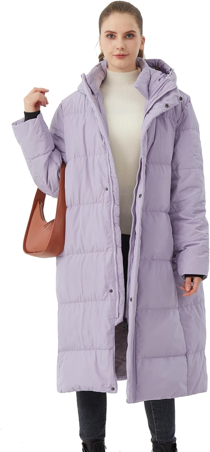 Women's Long Down Jacket with Hood 90% White Duck Down Puffer Coat Warm Winter Oversized Outerwear