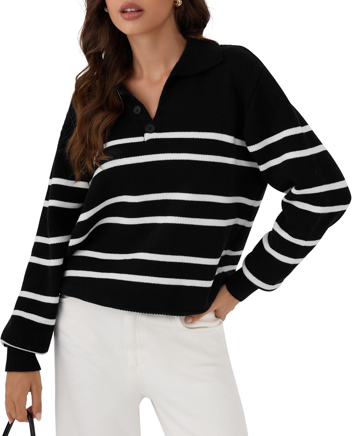ZAFUL Women's Casual Striped Sweater 2025 Fall Outfits Trendy Color Block Pullover Winter Polo Sweaters