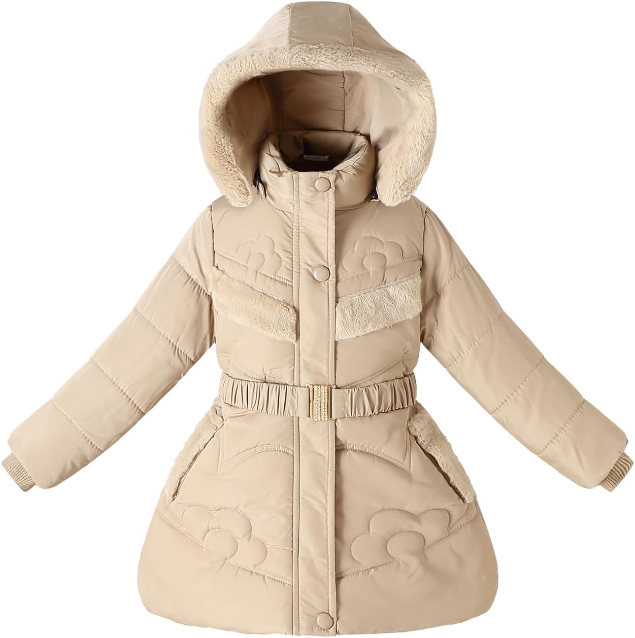 Kids Winter Girls Coats Fleece Padded Fur Collar Hooded Puffer Jackets Clothes