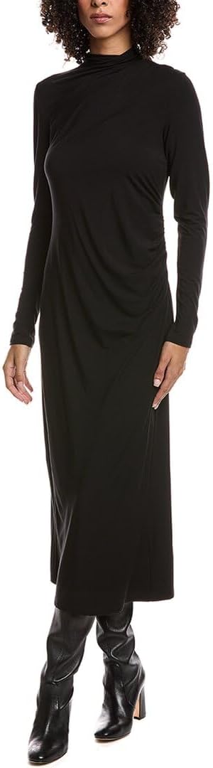 Vince Womens Long Sleeve Turtle Neck Rouched Dress