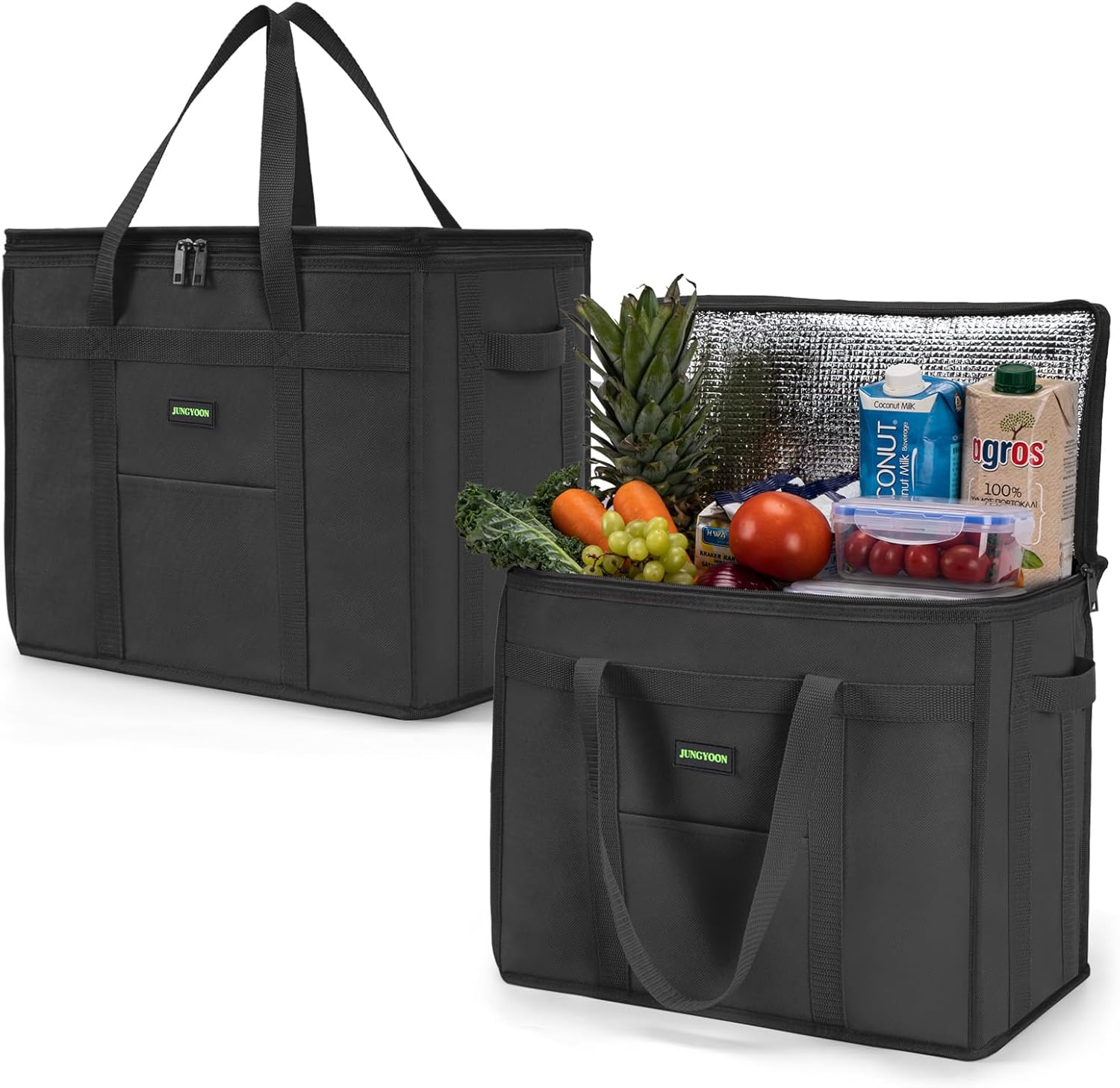 JUNGYOON Heavy-Duty Insulated Grocery Bags & Insulated Bag – Collapsible Cooler Bag with Zippered Top