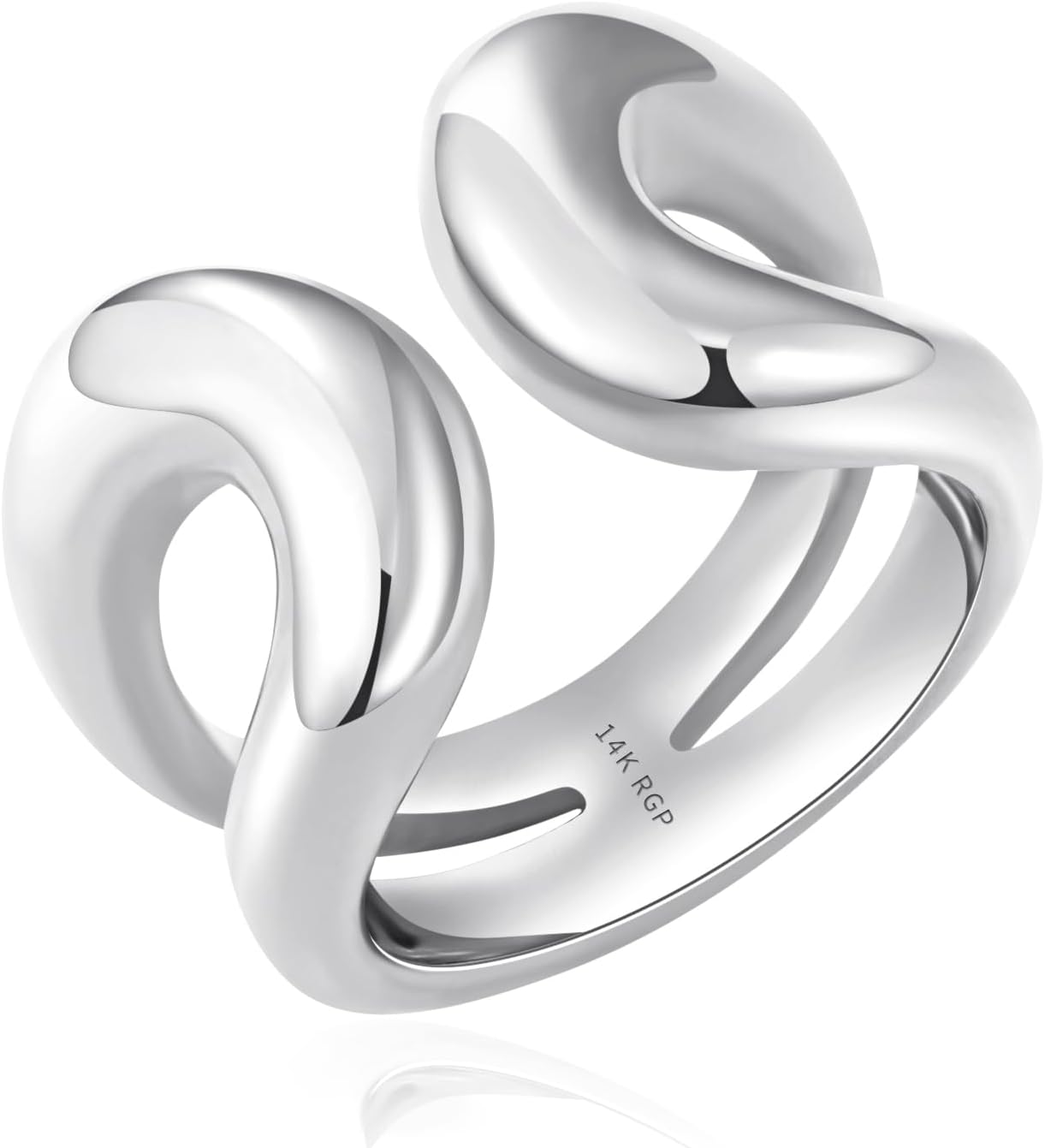 Gold Chunky Bands Ring 14K Real Gold Plated Open Statement Rings for Women and Men Double Layer High Polish Stackable Thick Ring Size 5 to 10
