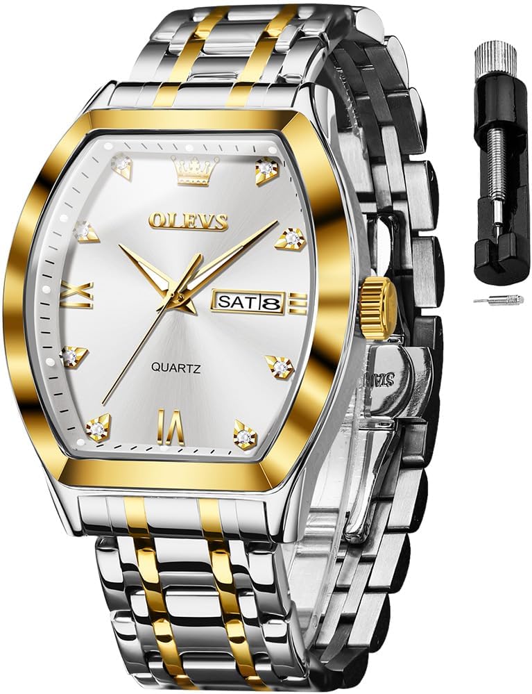 OLEVS Men Watches Square Business Dress Diamond Analog Quartz Date Luxury Watch for Men Casual Stainless Steel Waterproof Luminous Wrist Watch