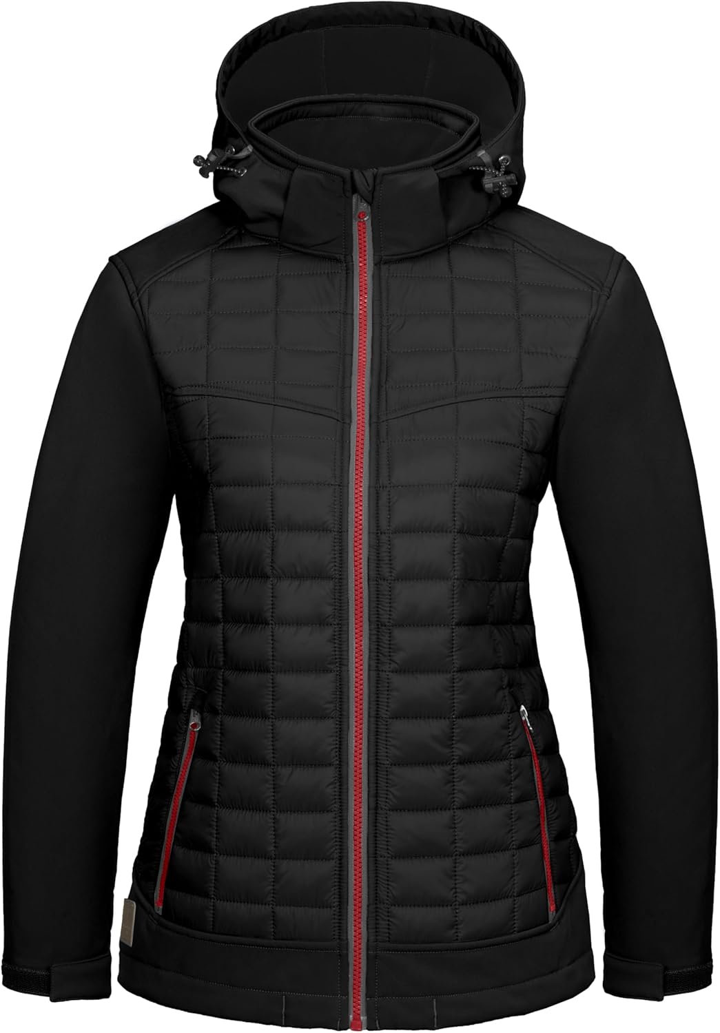 Little Donkey Andy Women's Lightweight Insulated Hybrid Jacket for Hiking Running Ski Thermal Warm with Removable Hood