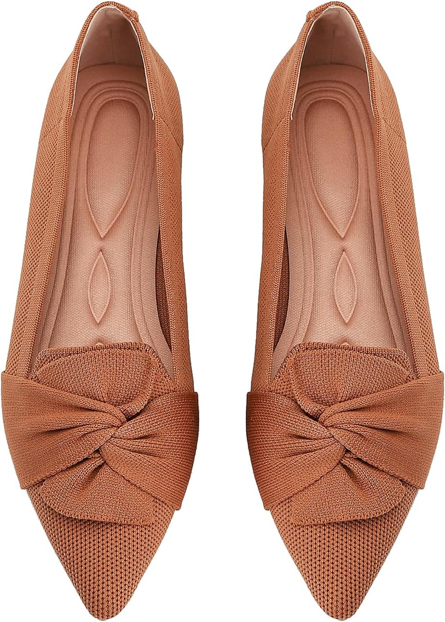 Flats for Women Pointed Toe Knit Foldable Ballet Women's Fat Shoes Dressy Comfortable Slip On Womens Shoe for Casual Office Work
