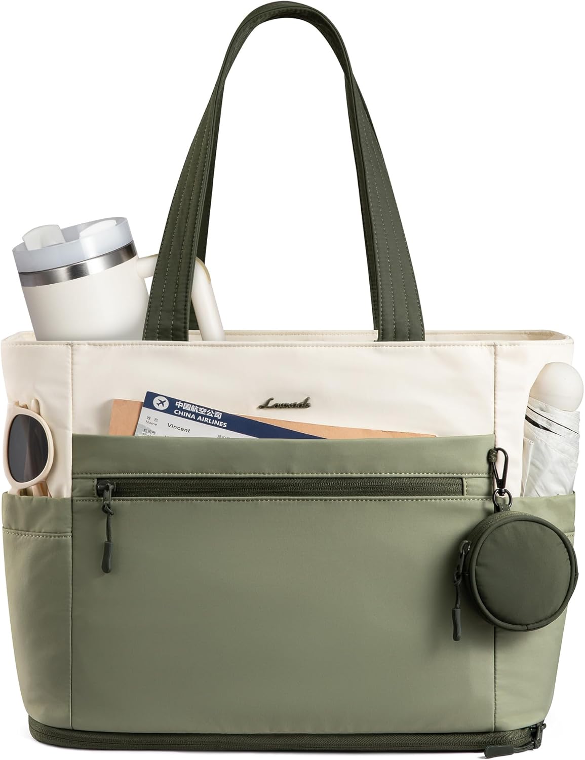 LOVEVOOK Tote Bag for Women, Expandable Laptop Work Bag 15.6 Inch, 33L Large Travel Handbag with 40oz Tumbler Holder, TSA