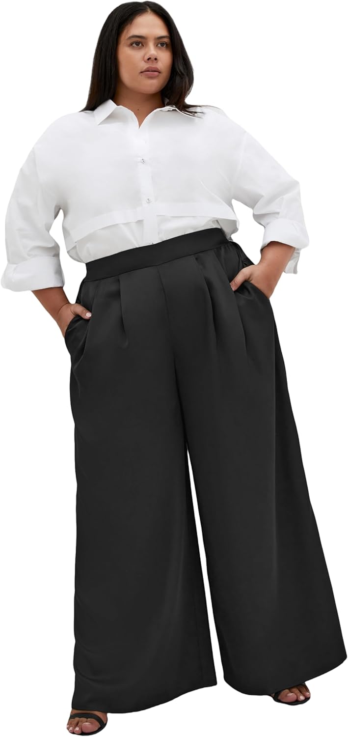 City Chic Plus Size Satin Palazzo Champagne Pant