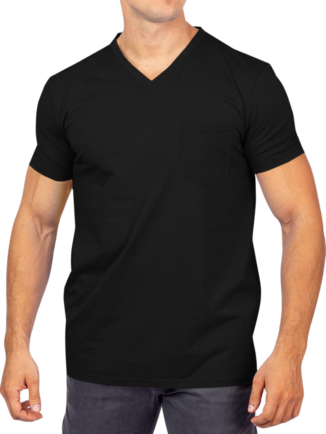 Runcati Mens Cotton V Neck T-Shirts Short Sleeve Casual Basic Summer Beach Pocket Tee Tops