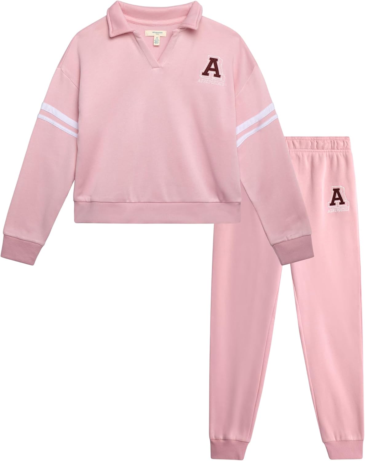 AEROPOSTALE Girls Sweatsuit Set - 2 Piece Fleece Pullover Collared Top Sweatshirt and Girls Sweatpants Activewear Set (7-16)