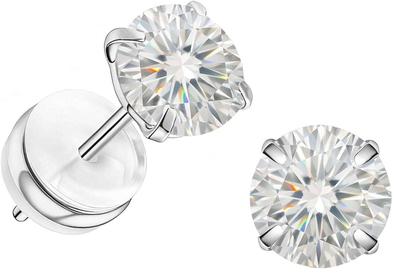 Moissanite Stud Earrings in 14K White Gold Plated Titanium | HypoAllergenic Earrings for Women & Men