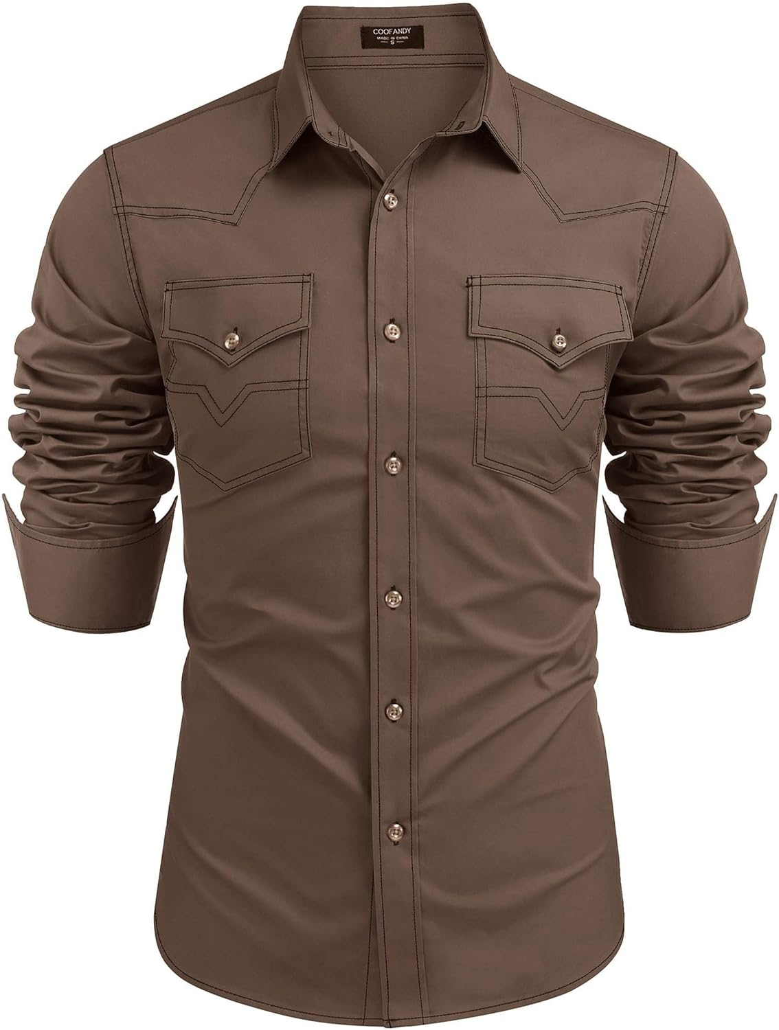 COOFANDY Men's Western Cowboy Shirts Long Sleeve Cotton Casual Button Down Work Shirt with Pockets