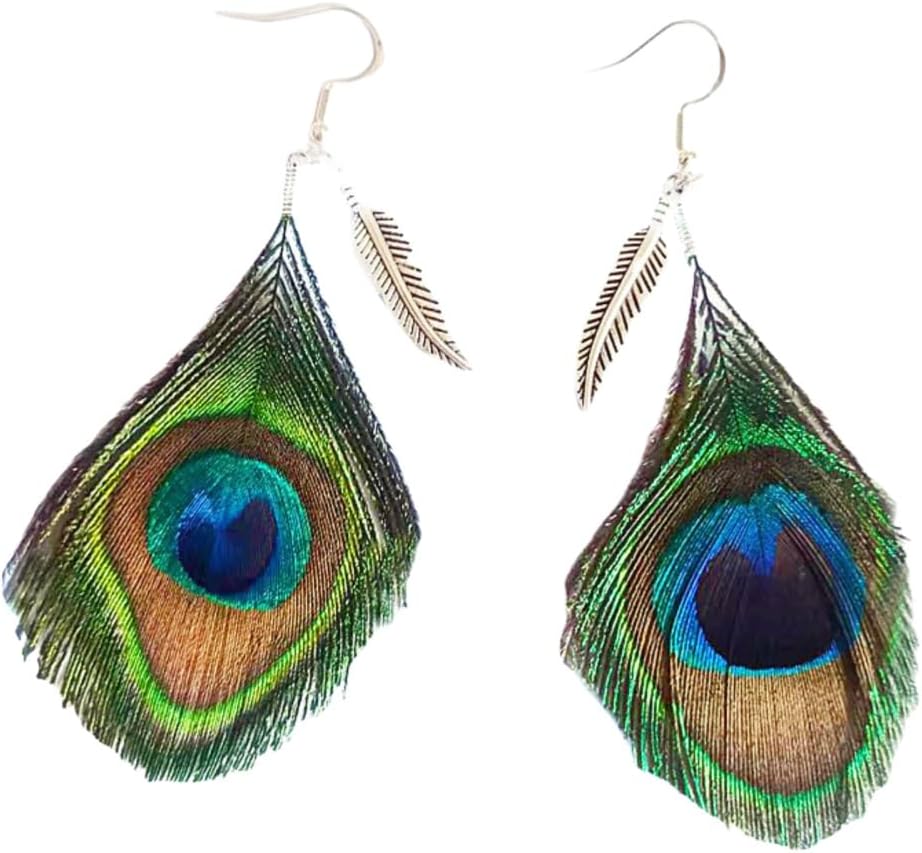 Peacock Feather Earrings Bohemia Handmade Feather Dangle Drop Earrings for Women Jewelry
