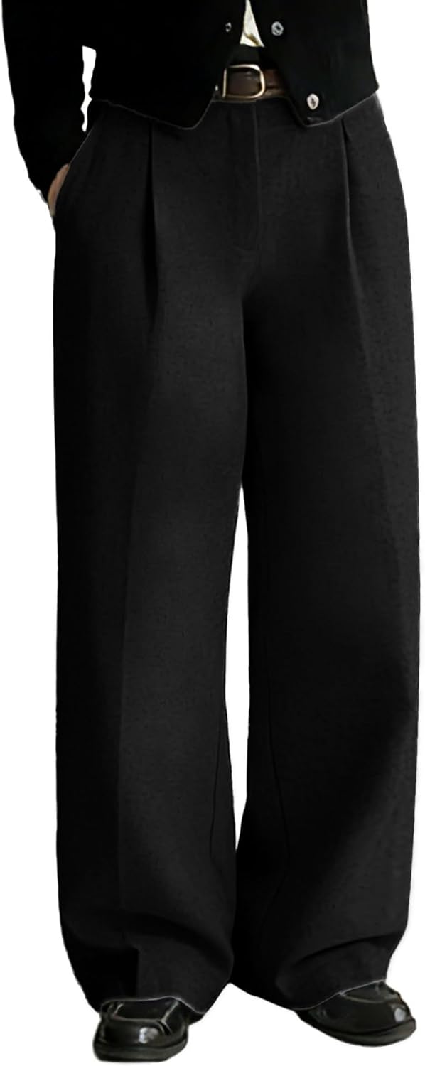 Susclude Mens Linen Casual Dress Pants Old Money Wide Leg Baggy Pleated Vintage Relaxed Fit Slacks Work Office Trousers