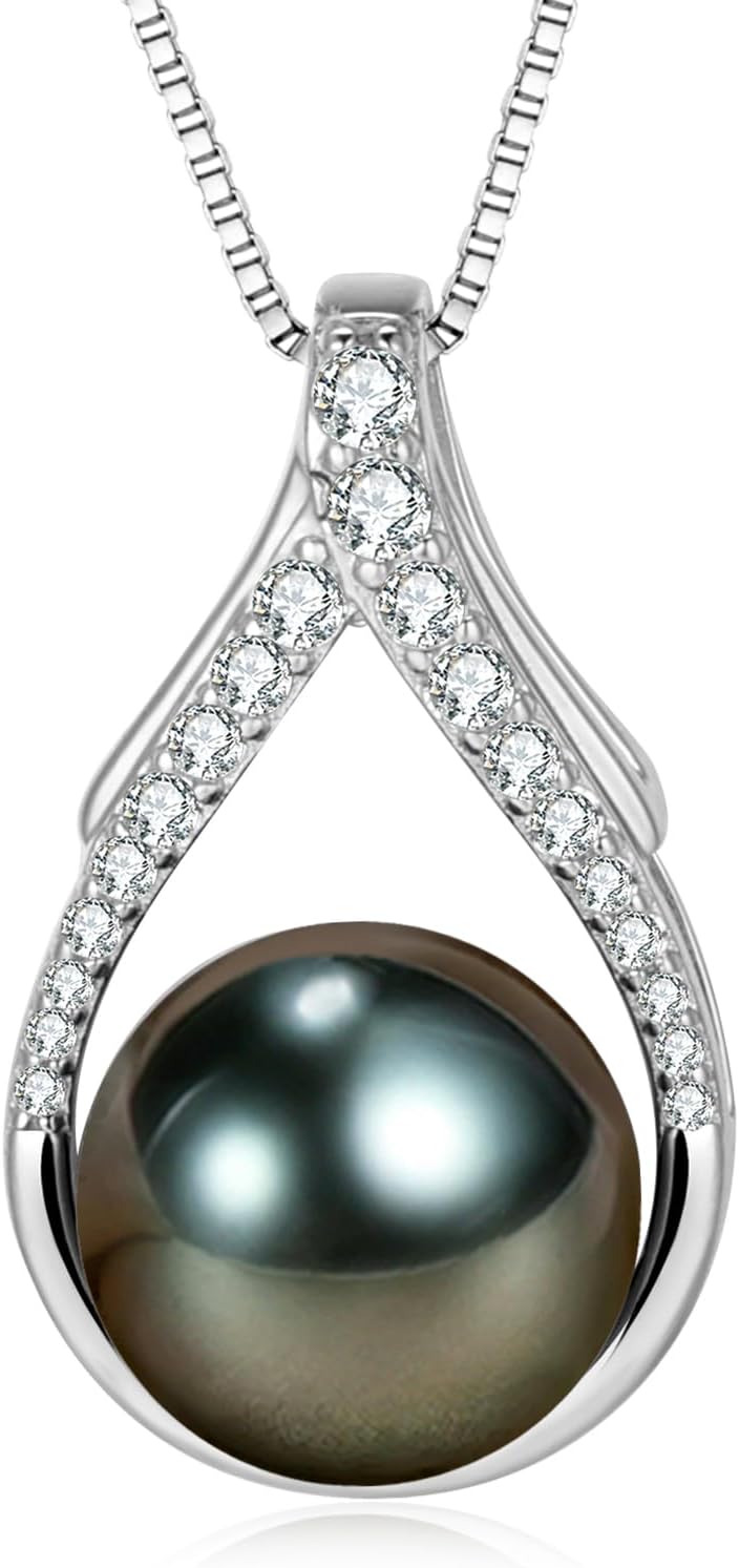 Valentine's Day Gifts for Her Women Tahitian Black Pearl Necklaces Mothers Day Gift for Mom Girlfriend Grandma Wife on Christmas Day Birthday Gifts Wedding Gift Jewelry Anniversary