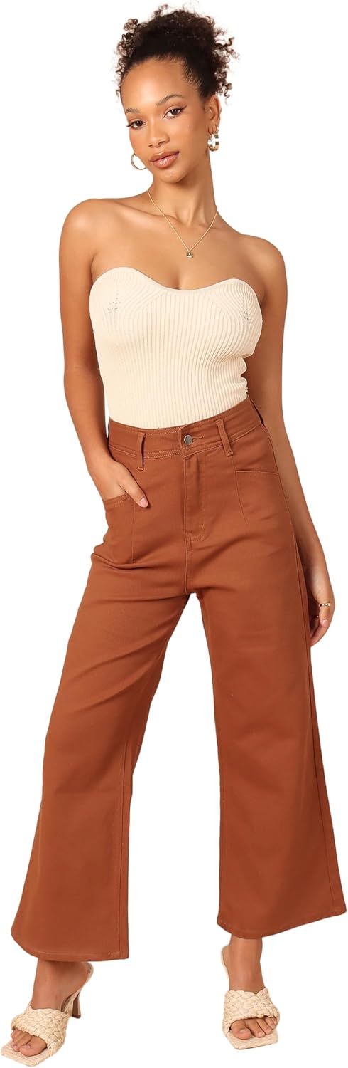 Petal & Pup Womens Georgette High Waisted Straight Leg Pants - Brown
