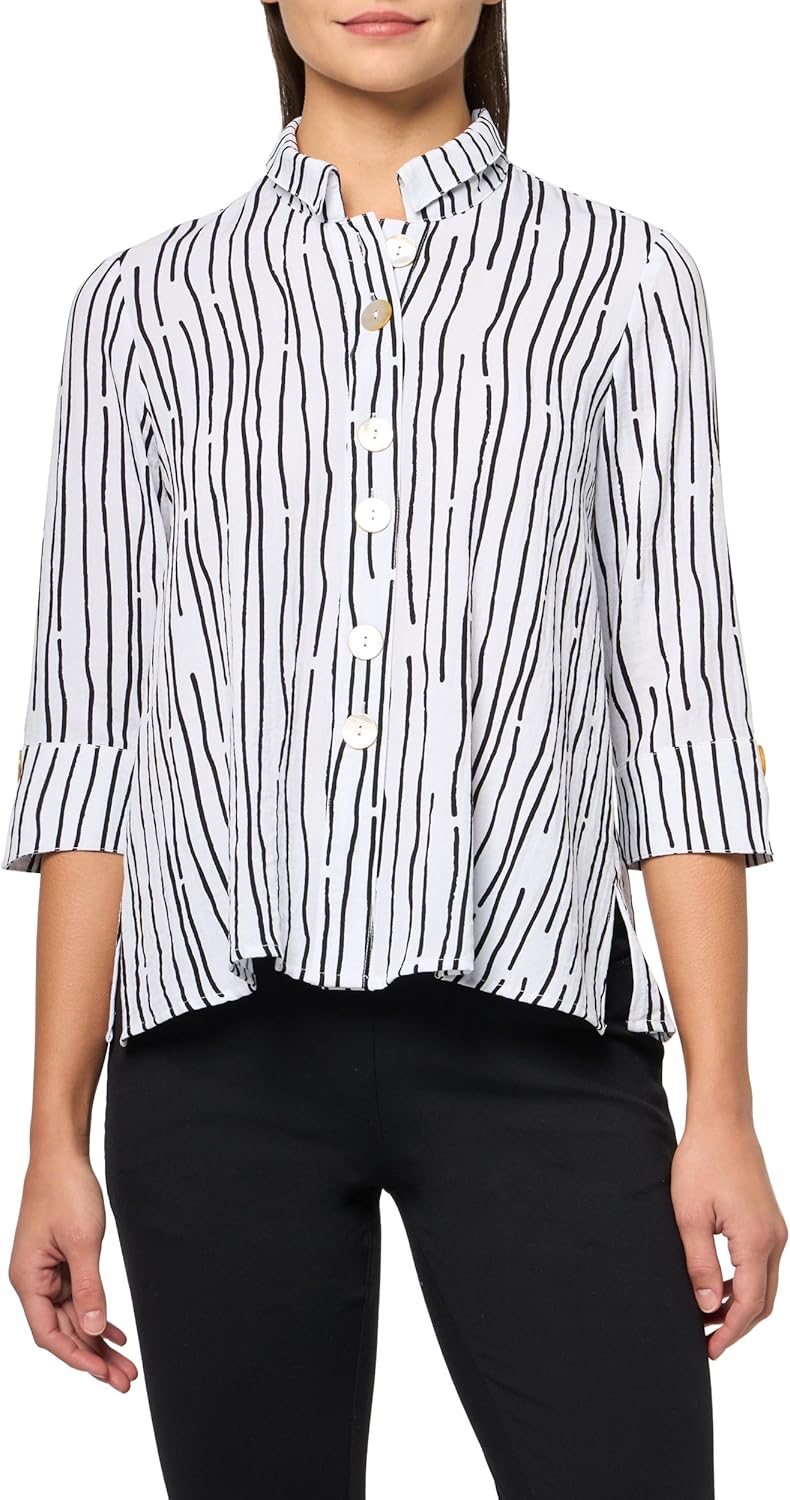 Ali Miles Womens Woven Button Front Wire Collar Three Quarters Sleeves