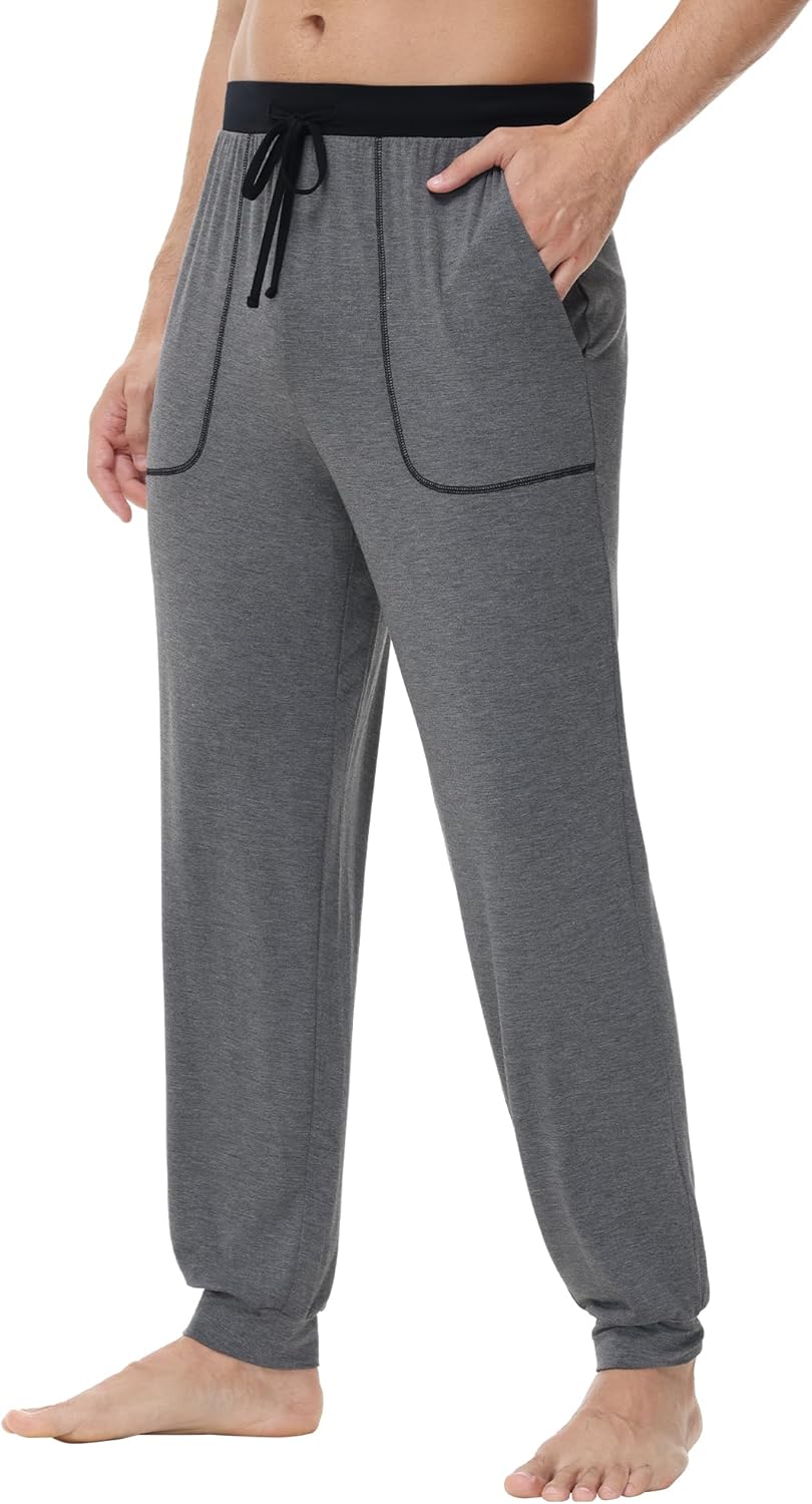 WiWi Men's Bamboo Viscose Pajama Jogger Pants Soft Lounge Bottoms Sleep Long Pj Joggers Sweatpant S-XXL