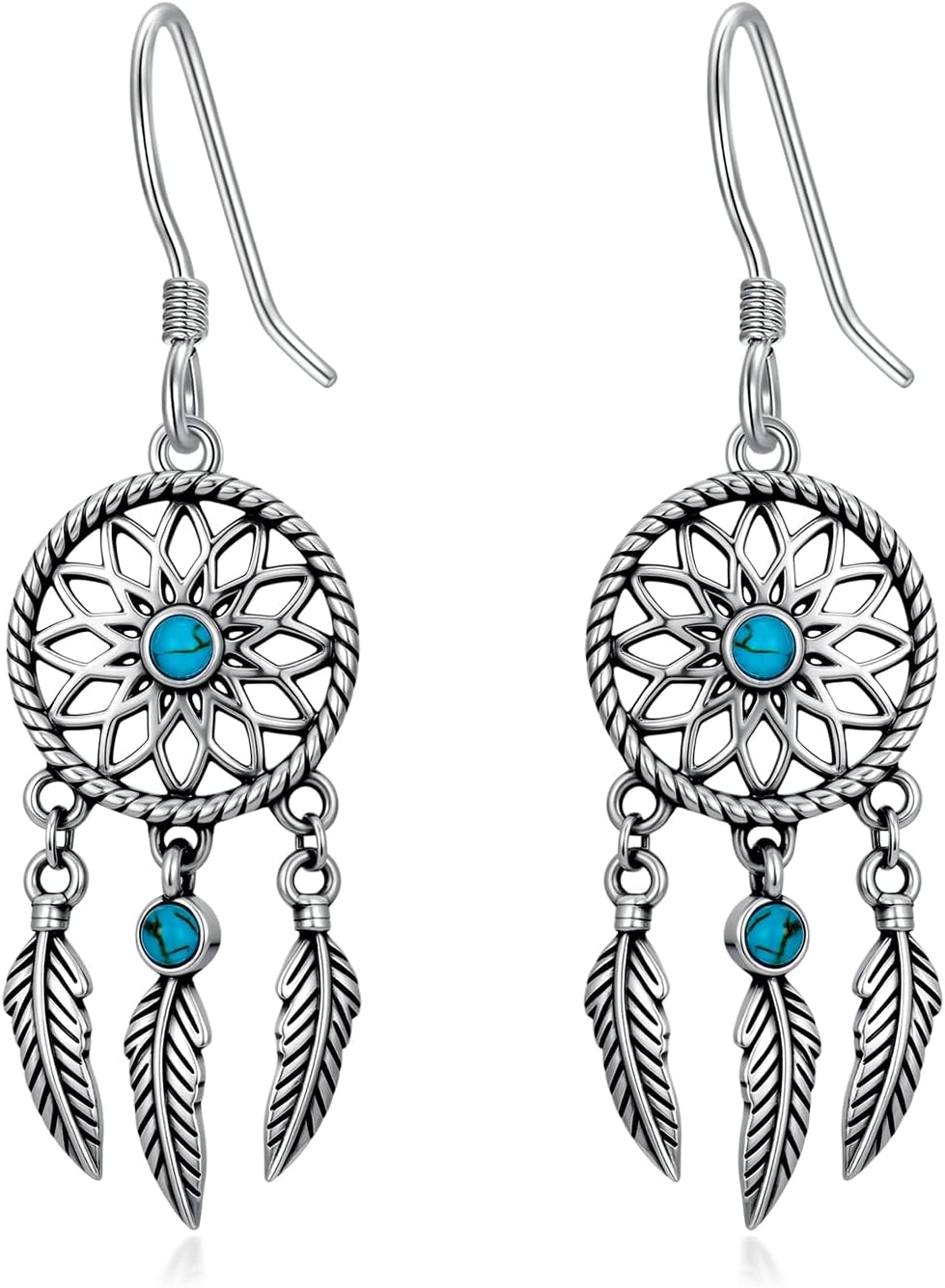 Turquoise Dream Catcher Earrings for Women Dream Catcher Statement Feather Dangle Drop Earrings Vintage Bohemian Western Jewelry Gifts
