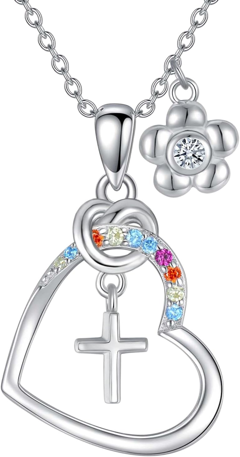 AOBOCO Cross Necklace Birthstone Jewelry Baptism First Communion Confirmation Gifts Necklace for women