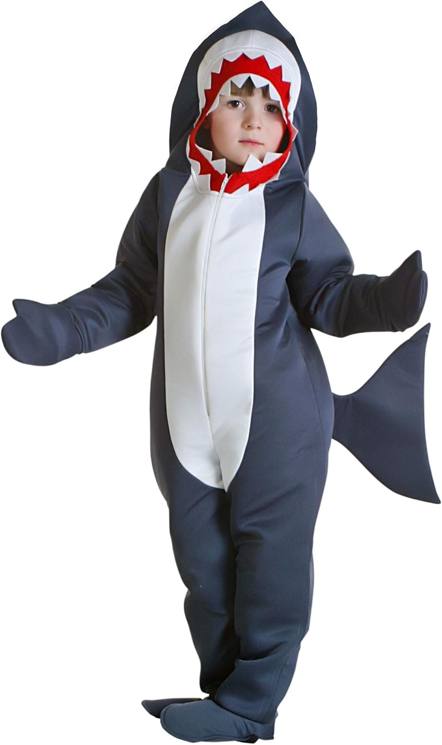 Toddler Shark Costume - Polyfoam Bodysuit with Attached Mitts, Foot Covers, and Shark Fin