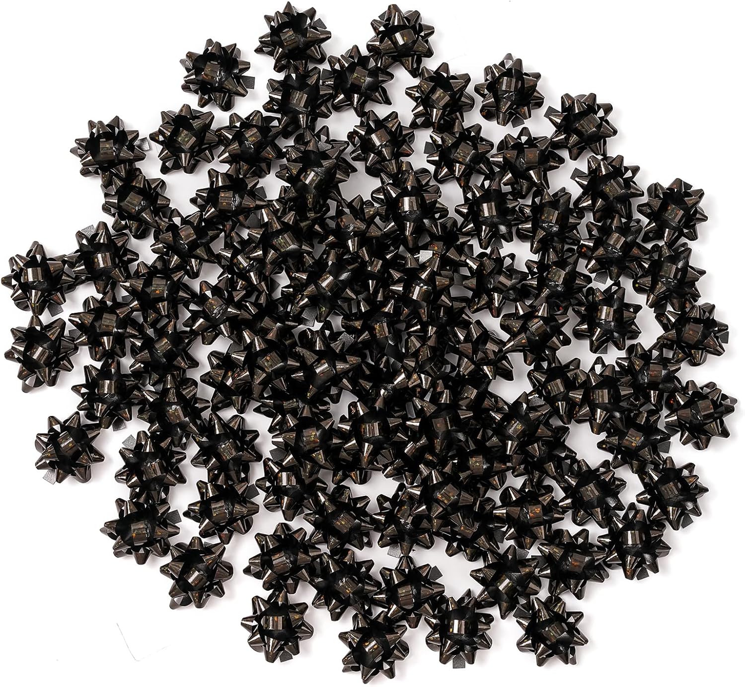 WRAPAHOLIC 100 Pcs Metallic Black Gift Bow Assortment - 1 Inch Mini Bow for Christmas, Birthday, Wedding, Baby Shower, Bridal Showers