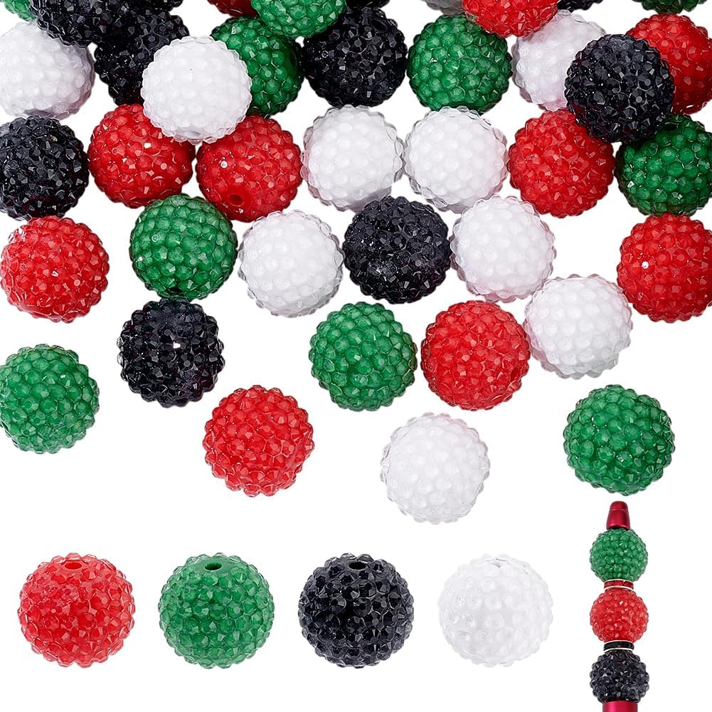 AHANDMAKER 40pcs Rhinestone Beads 20mm 4 Color Chunky Bubblegum Ball Beads Bulk Crystal Round Disco Ball for Beaded Pens Bracelets Charms Craft European Style Jewelry Making Supplies Christmas